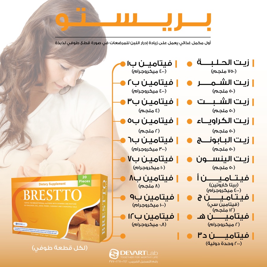 الحل الأمثل لزيادة إدرار اللبن في صدر الأم وبالتالي ضمان رضاعة طبيعية لأنه يحتوي على تركيبة فريدة من ٦ مُستخلصات زيوت أعشاب طبيعية من الحلبة والكراوية والينسون والكاموميل والشبت والشمر بالإضافة إلى ١٣ فيتامين مُهم لصحة الأم (فيتامين أ، فيتامين د، فيتامين هـ، فيتامين ج وفيتامين ب الكامل مركب) ولتحقيق أقصى استفادة للأم والطفل في قطعة طوفي مضغ لذيذة بطعم الكراميل.