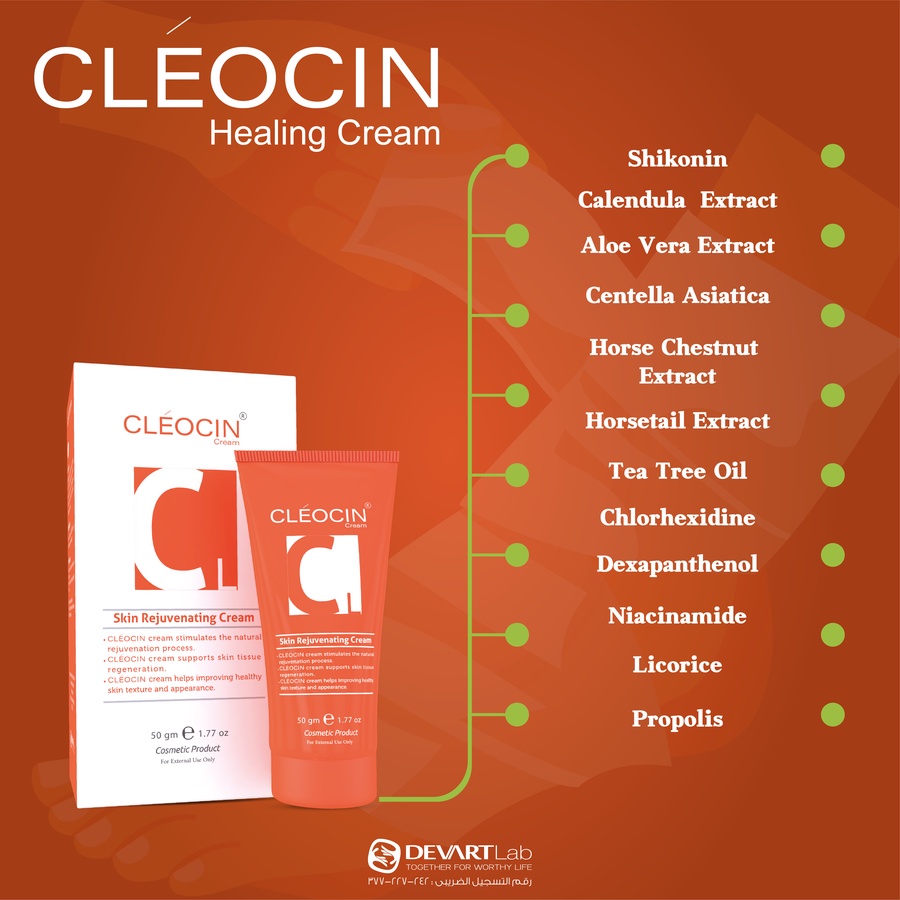 كليوسين كريم طبيعي 100% لالتئام الجروح والحروق وقرح القدم السكري. 5 فعالية في منتج واحد: مخدر، مضاد بكتيريا، مجدّد للأنسجة. تسوق الآن!